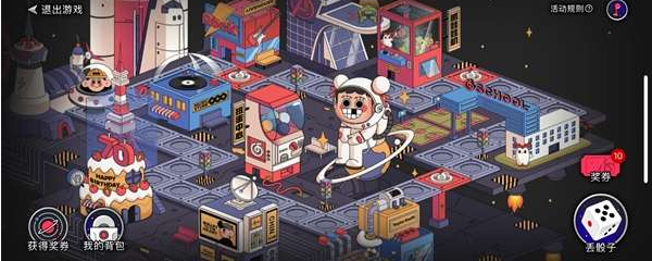 4、接着我们丢骰子使人物走动可以获得徽章和进行抽奖,抽奖需要走到网易云音乐图标的格子上。