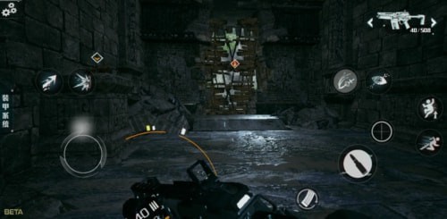 玩家首先要知道怎么奔跑,奔跑操作就是长按方向键,嗯,简单来说就是方向键一直前进就可以变成大众知道的动作,枪械不在是对准敌人,而是贴着身子的动作,这个就是奔跑模式,不是想和平精英那样,有一个奔跑的图标可以提示玩家。