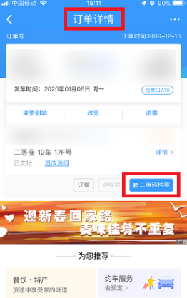 4、然后查看订单详情,点击页面上的“二维码检票”。