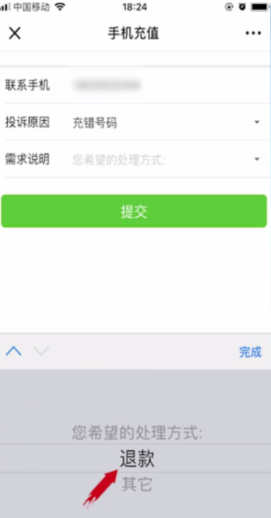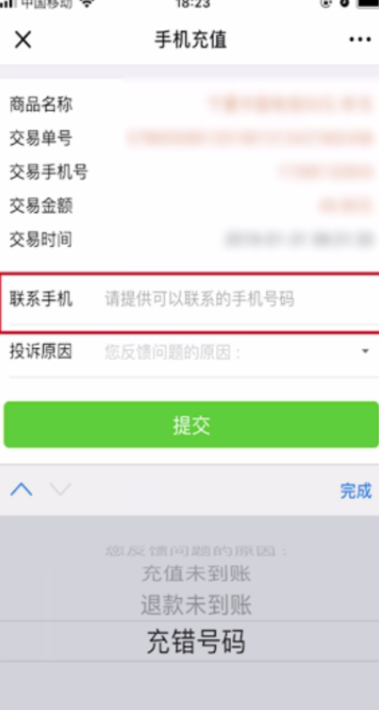 4、然后是填写联系电话和投诉的原因,原因要记得选择“充错号码”哦!
