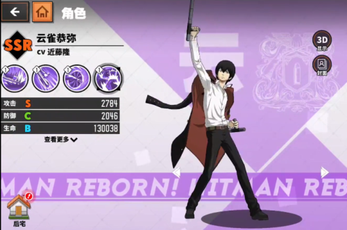 1、云雀恭弥,这个角色在动漫中就是一个非常强力的人物,在手游中也是一个强悍的存在,无论是PK还是刷图都是非常不错的存在,玩家得到了这个人物一定要首升。只是获得的难度较高。