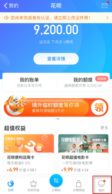 2、然后在花呗页面上点击右下角的“我的”。