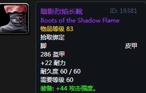 暗影烈焰长靴:脚部,出自黑翼之巢副本奈法利安掉落,推荐附魔初级速度。