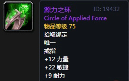 源力之环:戒指2,出自黑翼之巢副本弗莱格瑞掉落,无法附魔。