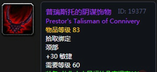 普瑞斯托的阴谋饰物:项链,出自黑翼之巢副本奈法利安掉落,无法附魔。