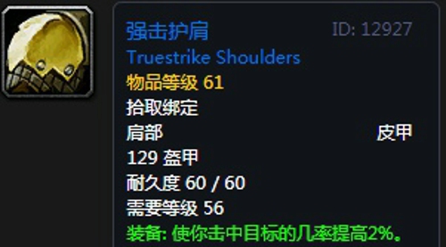 基础属性:129护甲,装备效果使你击中目标的几率提高2%,+24 攻击强度。