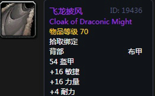 飞龙披风:披风,出自黑翼之巢副本小怪掉落,推荐附魔次级敏捷。