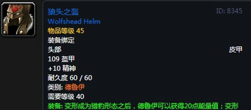 狼头之盔:头部,出自制皮专业制作,推荐附魔次级奥术融合。