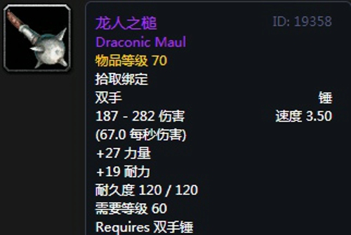 龙人之槌:双手锤,出自黑翼之巢小怪掉落,推荐附魔力量。