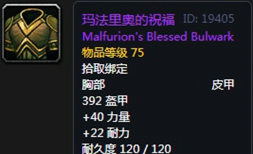 玛法里奥的祝福:胸甲,出自黑翼之巢副本埃博诺克掉落,推荐附魔强效属性。