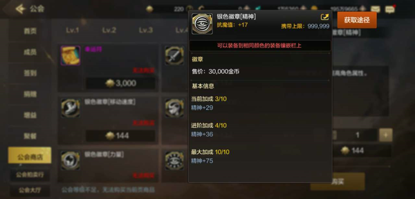 银色徽章在手游之中还是比较有用的,后期用来提升战力也是非常有用,关于它的获取方法,我们一般是在公会商店里面获得该产品,所以大家应该多参加工会活动哦。