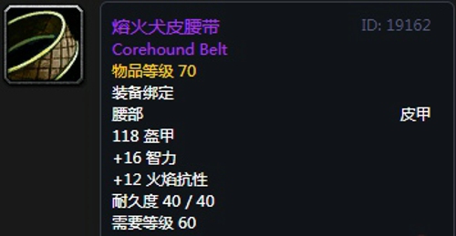 熔火犬皮腰带:腰带,出自制皮专业制作,无法附魔。