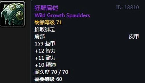 狂野肩铠:肩部,出自熔火之心副本管理者埃克索图斯掉落,推荐附魔多彩黎明衬肩。