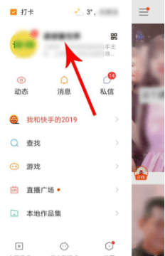 1.首先我们打开快手,进入页面之后,点击左上角的三条杠。