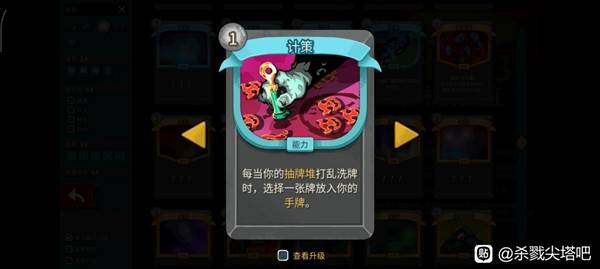 破灭是大家都清楚的一张老卡,而计策大家可能就有点陌生了,如配图,在洗牌后可以选一张加入手牌,若在抽牌堆没有牌的情况下打出破灭,那么就会优先从弃牌堆回到抽牌堆洗牌,而洗牌后又触发了计策,计策的优先级大于破灭的烧牌,所以劫掠并不会被烧掉,反而会因为触发了计策而加入手牌,达到伪抽一的效果,本质还是两零费互转的唐氏无限,无限质量也不高,但我觉得思路非常新颖,可开发的潜力很大,给大家提供一些思路,希望能对大家有一定的帮助。