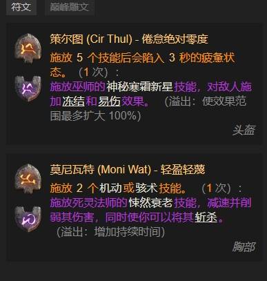 我们通过回火可以在【头、胸、裤子、鞋子】找到【延长仲裁官持续时间】词条,,可以让这个技能持续时间大于冷却,实现全程变身。前期启动可以靠天谴、坠天星落来触发仲裁官,后期大招无缝了它们就是来叠层的。