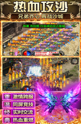 支持千人同屏大规模PVP,战场动态激烈,视觉冲击力强。内置自由交易系统,装备与材料流通稳定,价格波动小,保障玩家资产价值。三大职业体系独立完整,技能组合具备协同增益效果,团队配合可触发高额连携伤害。技能特效辨识度高,刷怪、PK及攻城战均具备强反馈与爽快感。